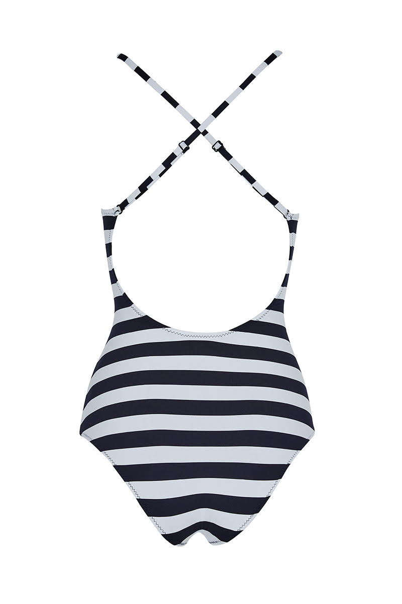 - CELINE is a new design for a one-piece swimsuit. It features a fully open back with crossed adjustable straps. Fully lined and proudly made in Greece with our Summer 2025 mariniere fabric.