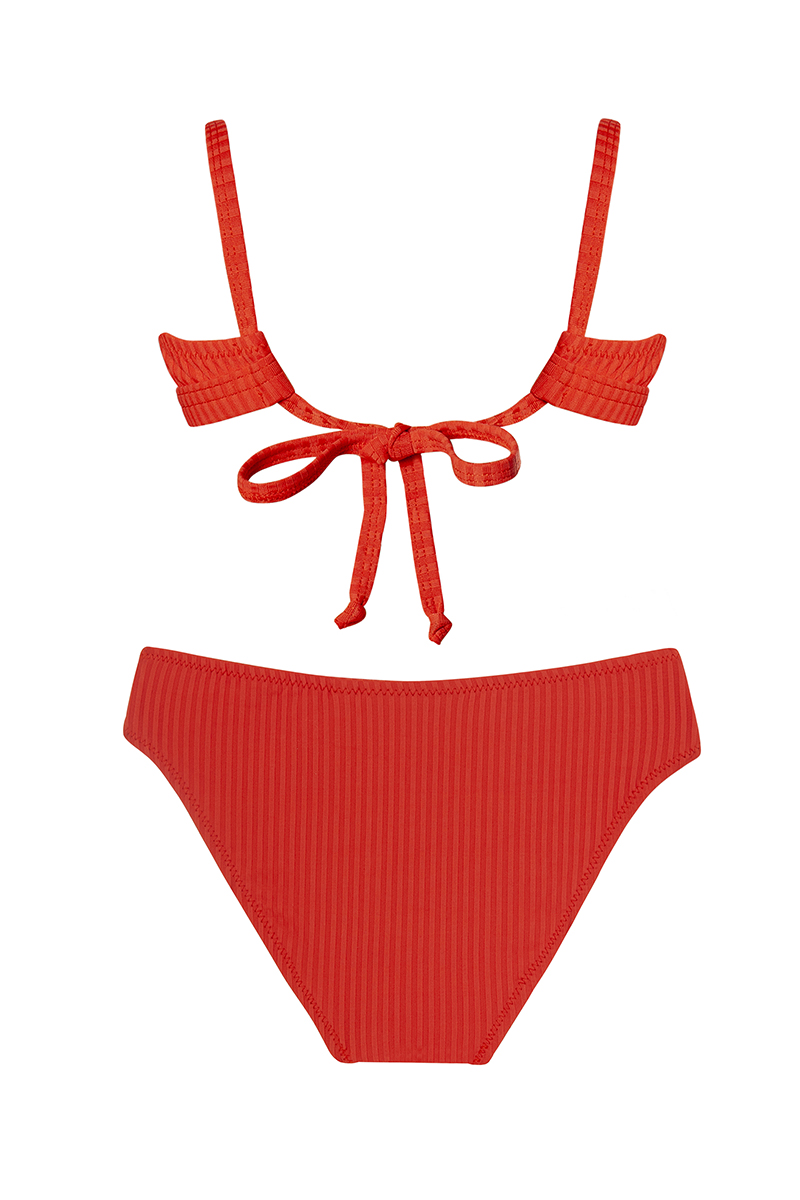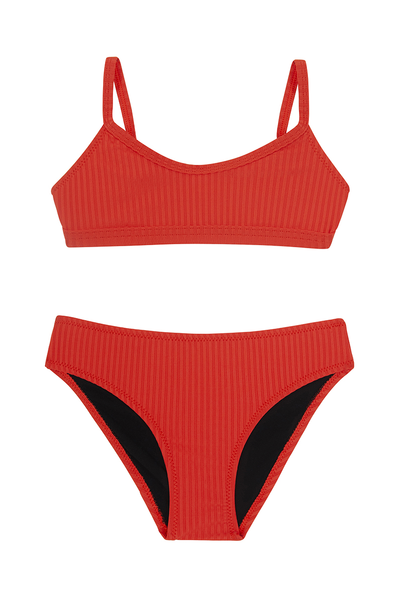 Elodie is a new girl’s set made out of our striped tangerine buttery fabric.