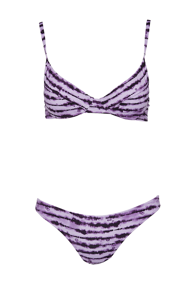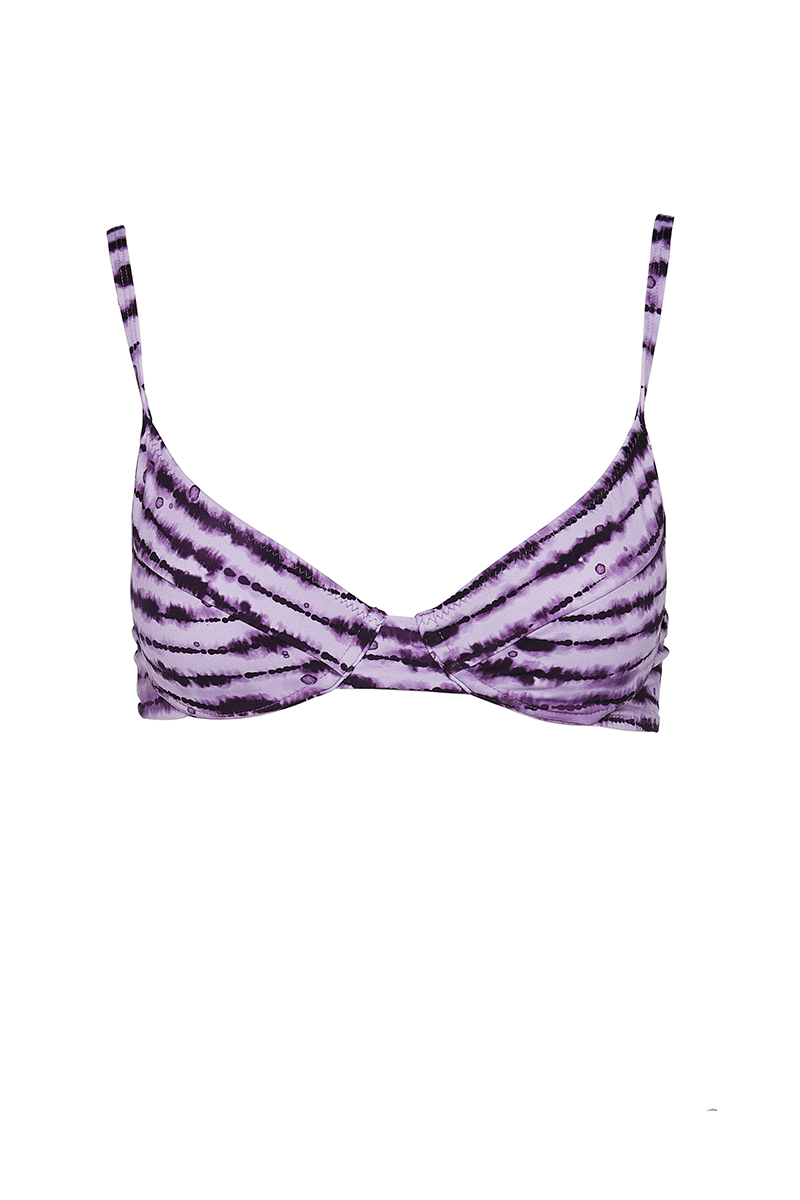 The MADY top is perfect for those who prefer more structured swimwear. It features underwired cups for a firm hold. Fully lined and proudly made in Greece with our Lilac tie dye printed on our earth – friendly fabric.