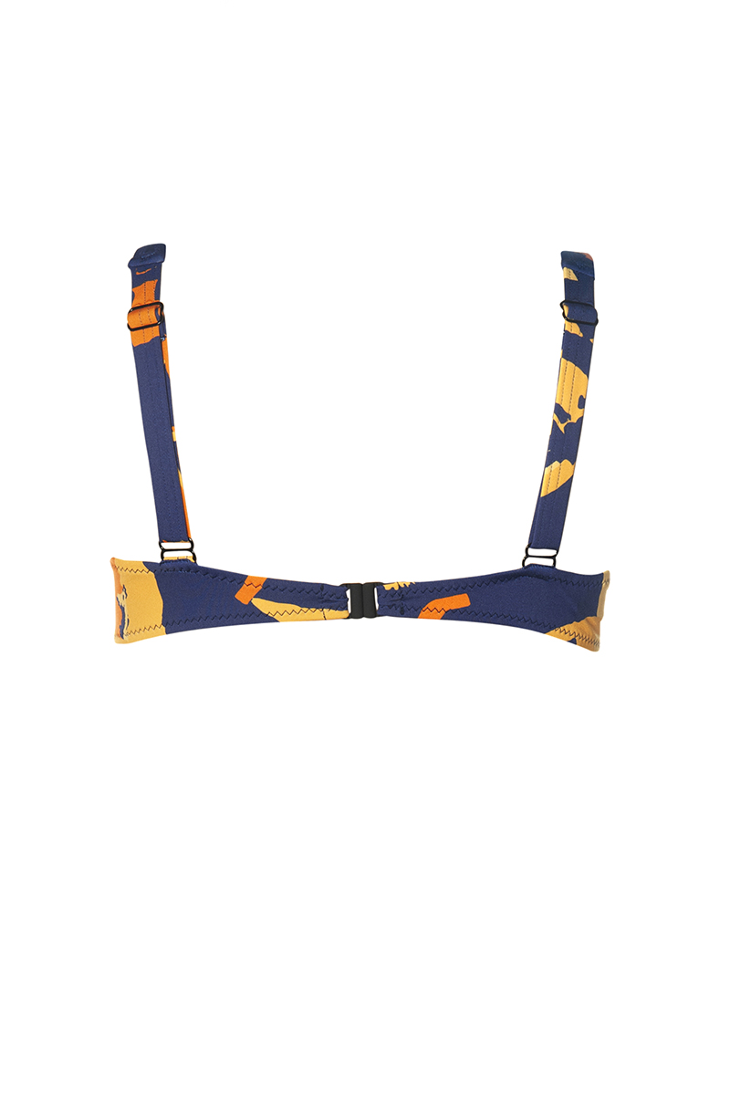 MAE , is a bikini top with a firm hold and a rushed detail front. Fully lined and proudly made in Greece with our exclusive archipelago print, on our earth friendly fabric.