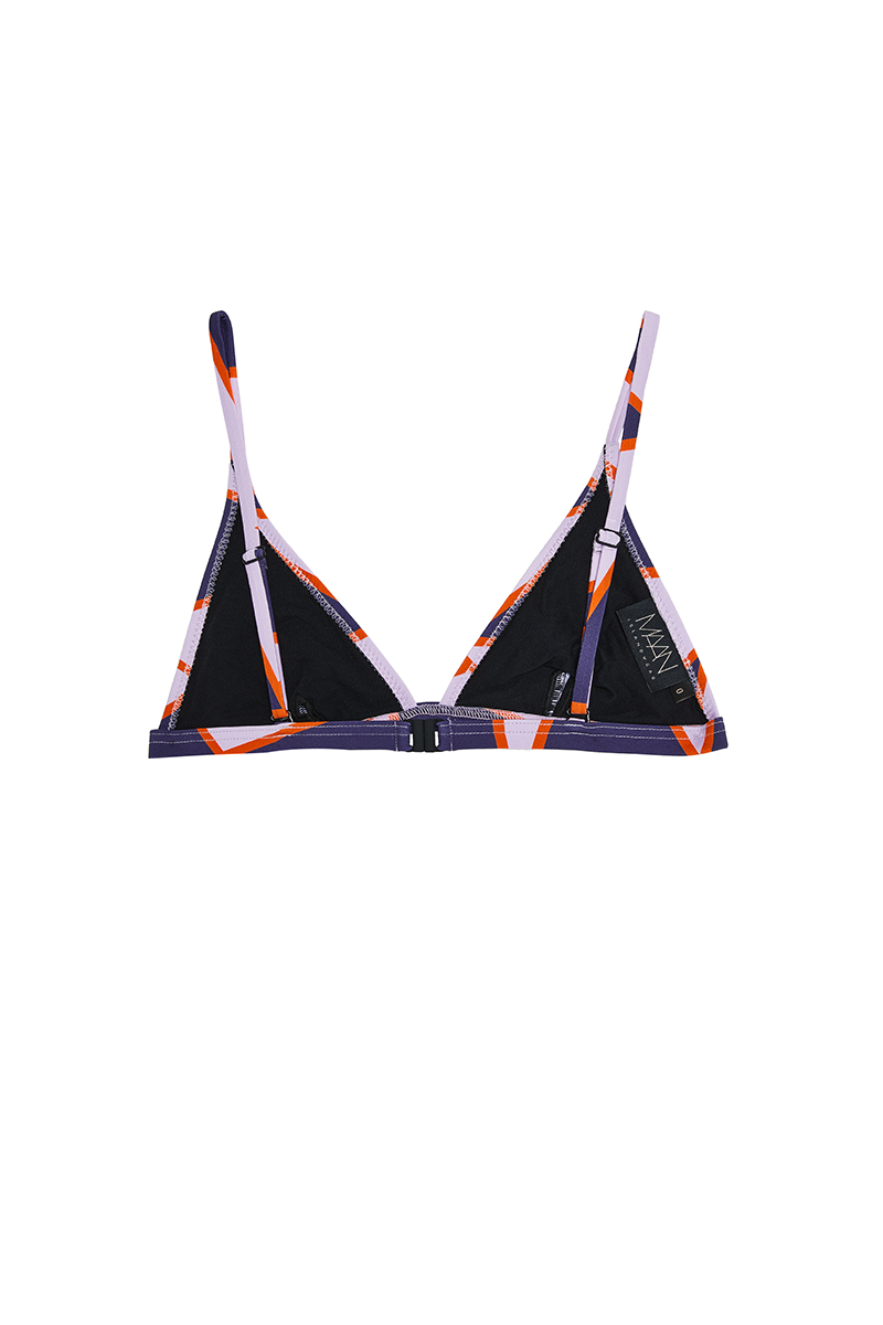 ZOE is a basic triangle top to MAAN islandwear’s collection that carries removable pads. perfectly combined with the Elise briefs. Fully lined and proudly made in Greece with our Summer 2025 Lilac Logo printed on our earth – friendly fabric.
